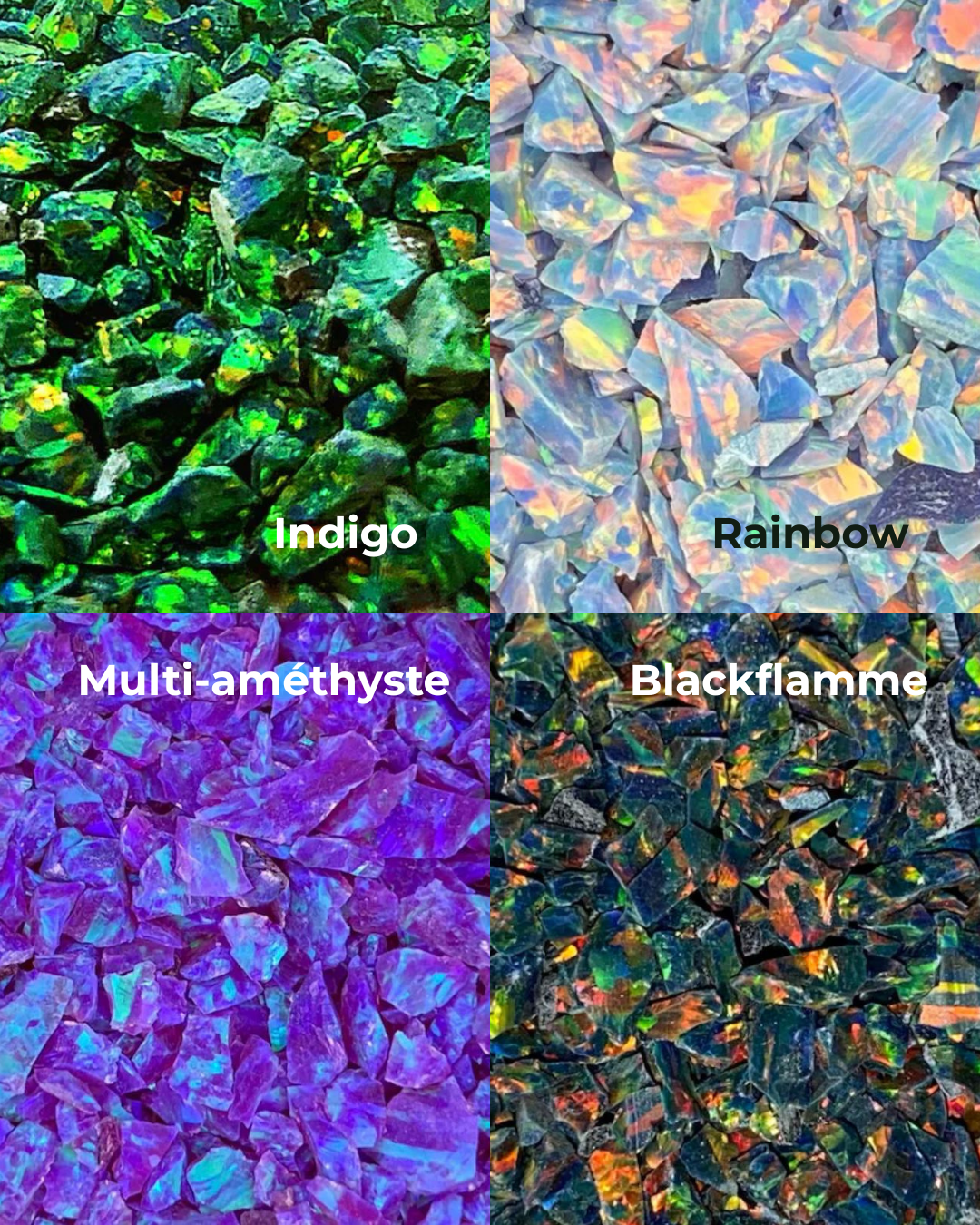 🔹 3 incrustations personnalisables : bois naturel, pierres ou opales au choix