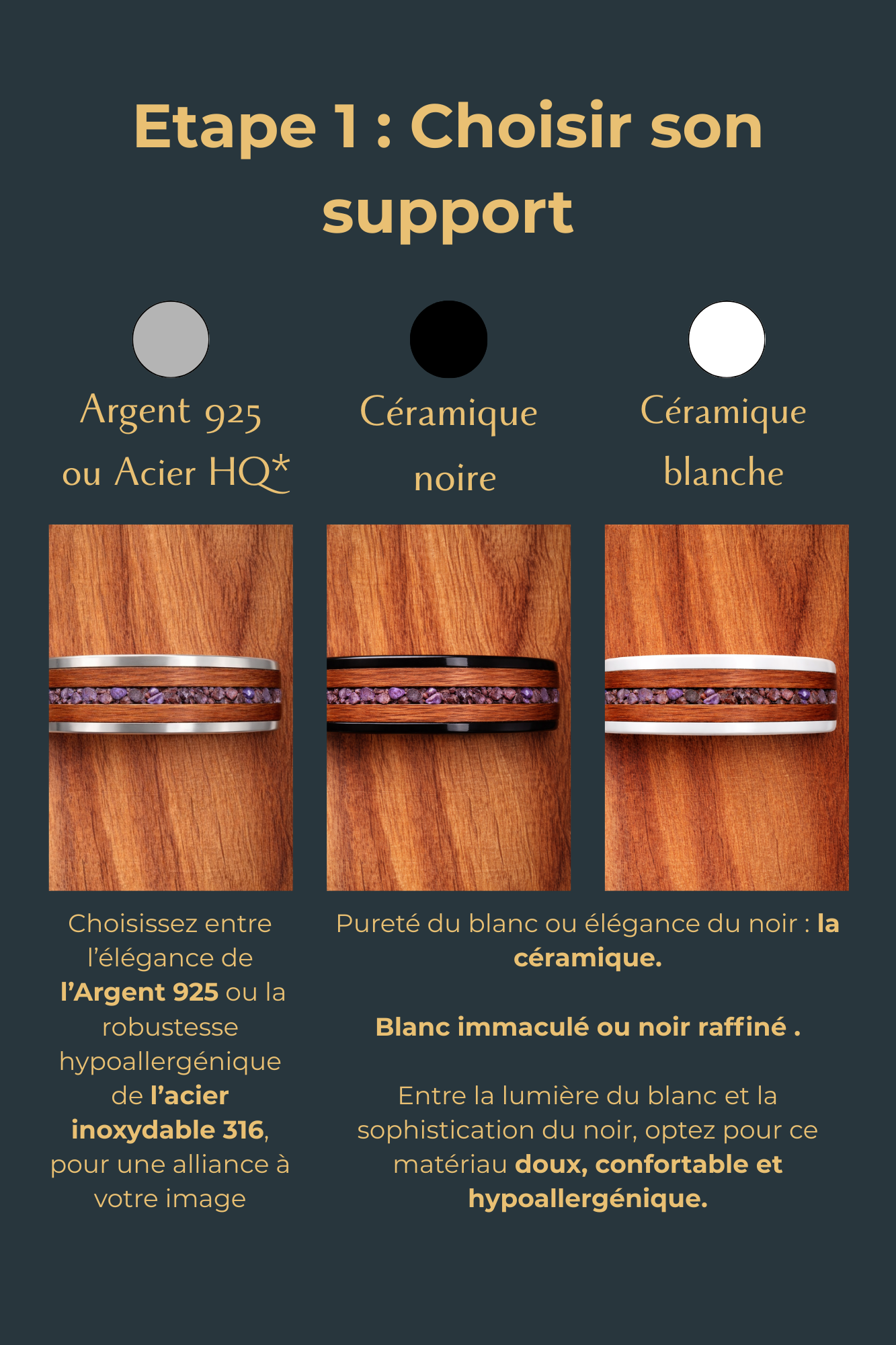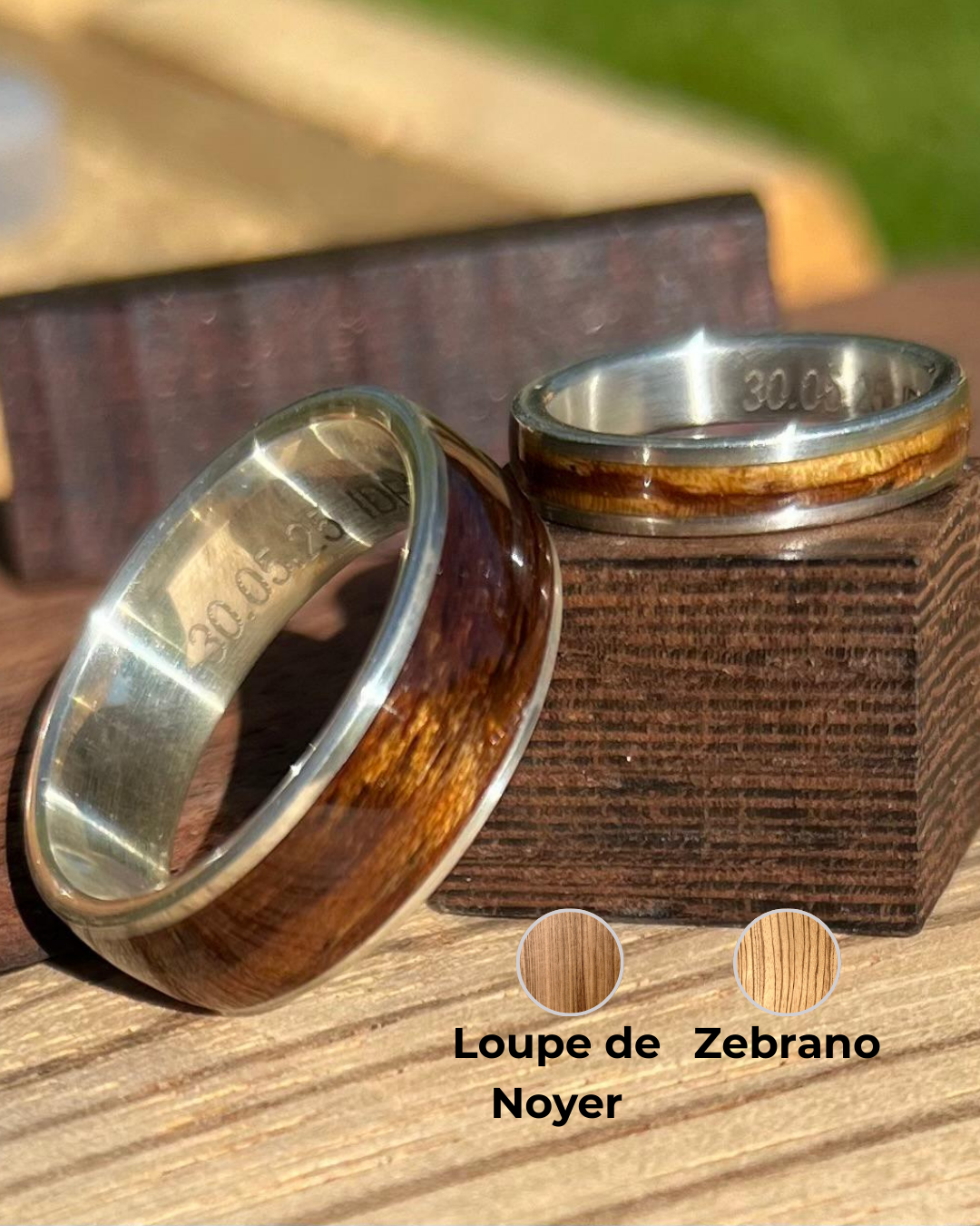 🔸 Bois massif uniquement : une seule essence par bague pour une mise en valeur pleine et sobre