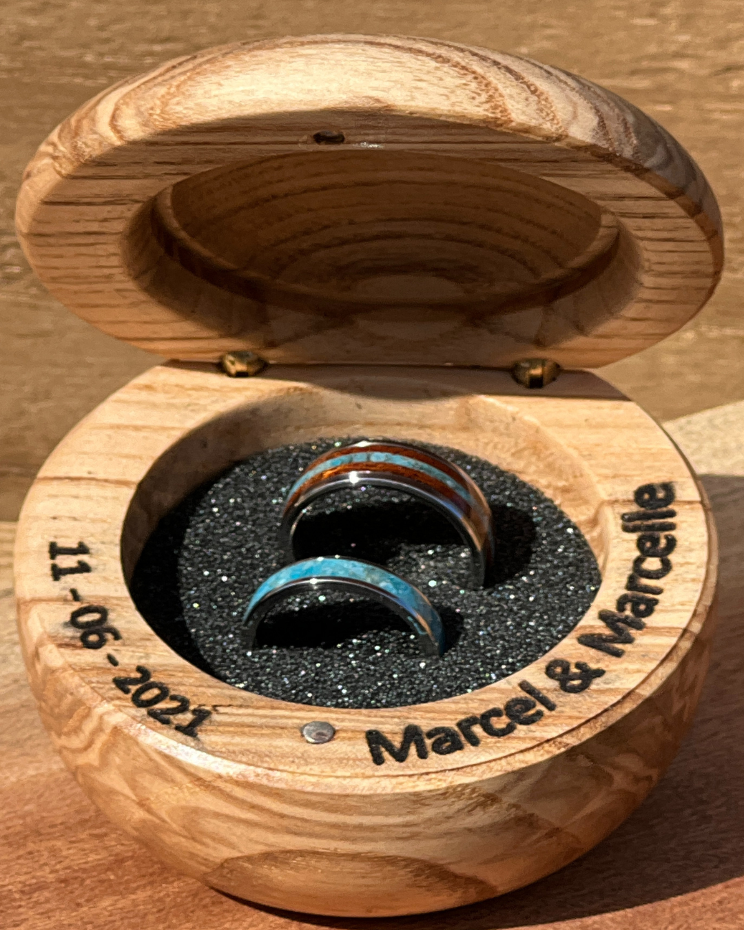 Nos anneaux en bois sont conçus pour accompagner le quotidien avec élégance. Grâce à leur finition imperméable, ils peuvent être portés lors des gestes courants, comme le lavage des mains.